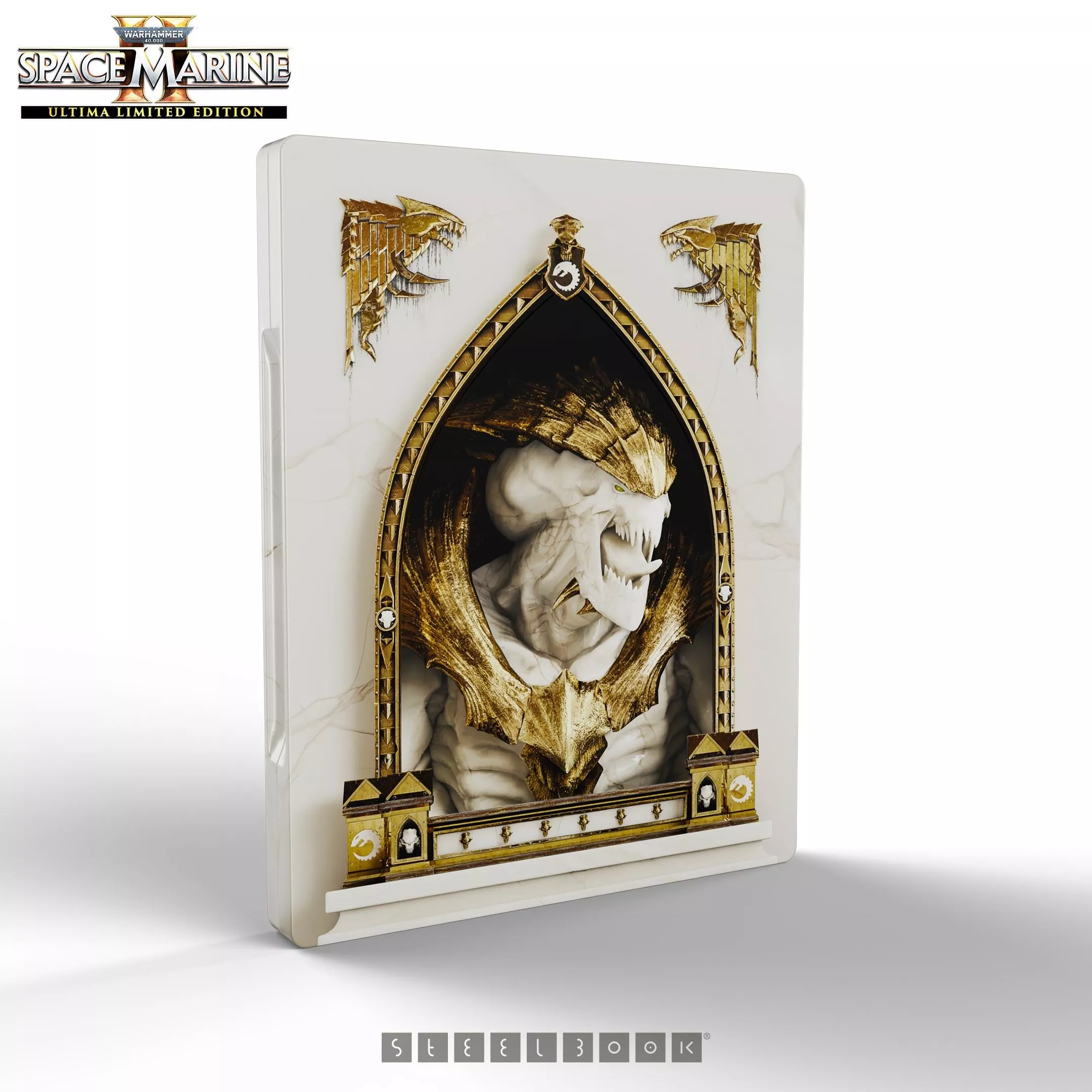 استعد لدخول ساحات الحرب الأسطورية في عالم Warhammer 40K مع Ultima Limited Edition، النسخة الخاصة ذات التصميم الفاخر التي تأتي بصندوق مميز يحمل درع الـ Ultramarines الذهبي.