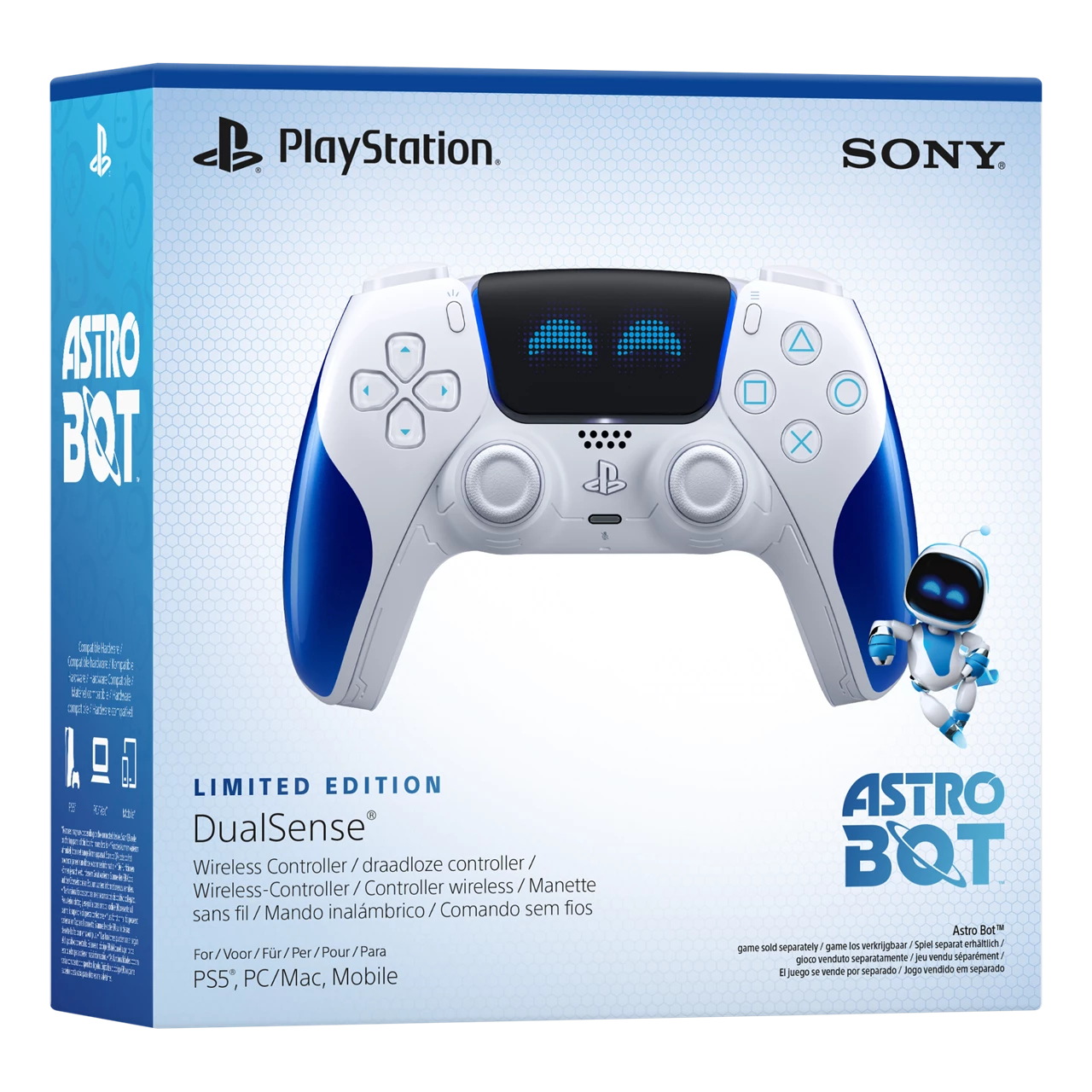يأتي هذا الإصدار بلمسات تصميم فريدة تجمع بين اللونين الأبيض والأزرق السماوي مع تفاصيل مبهجة تجسد روح المرح والاستكشاف التي يشتهر بها Astro Bot.